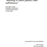 Nothing is More Joyless Than Selfishness is written by Ajahn Sumedho. This book provides information abour five talks to the monastic community at Wat Pah Nanachat in May 1989, given by Ajahn Sumedho and transcribed by Bhikkhu Gavesako.